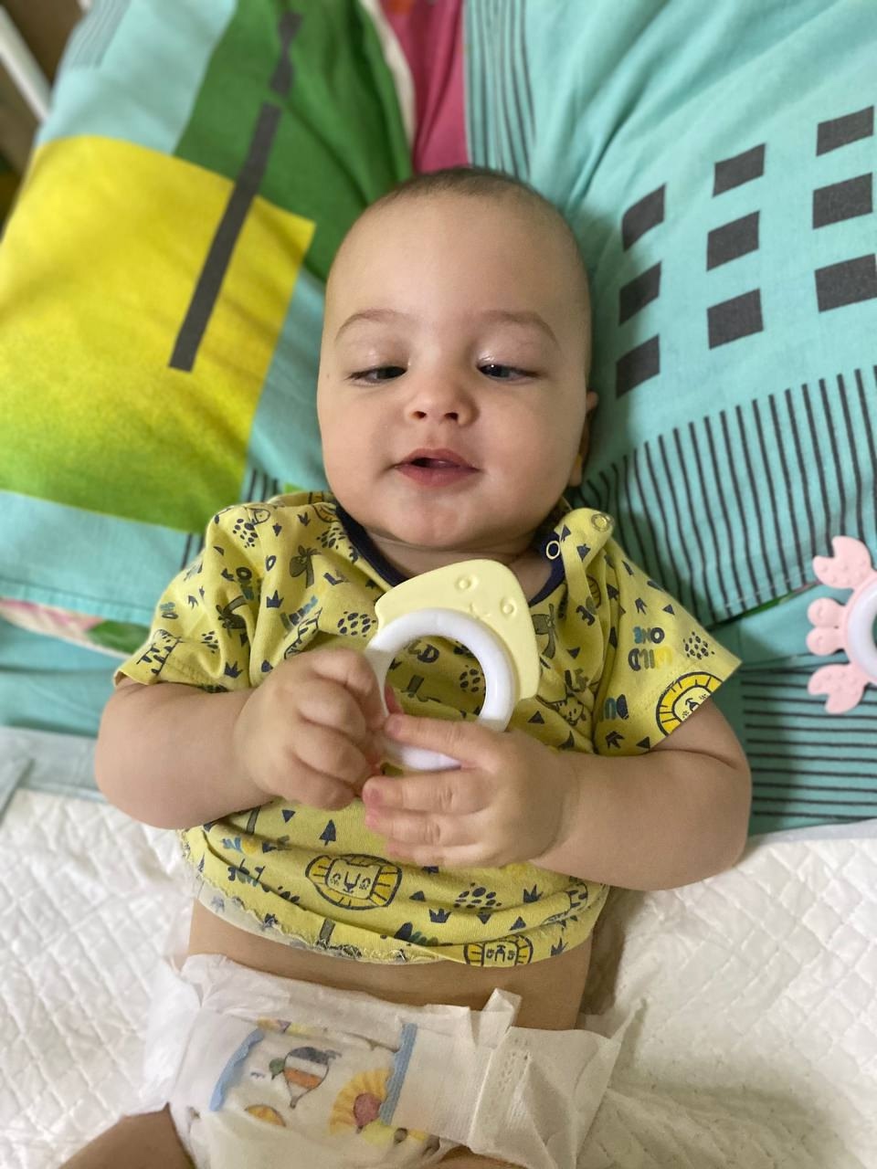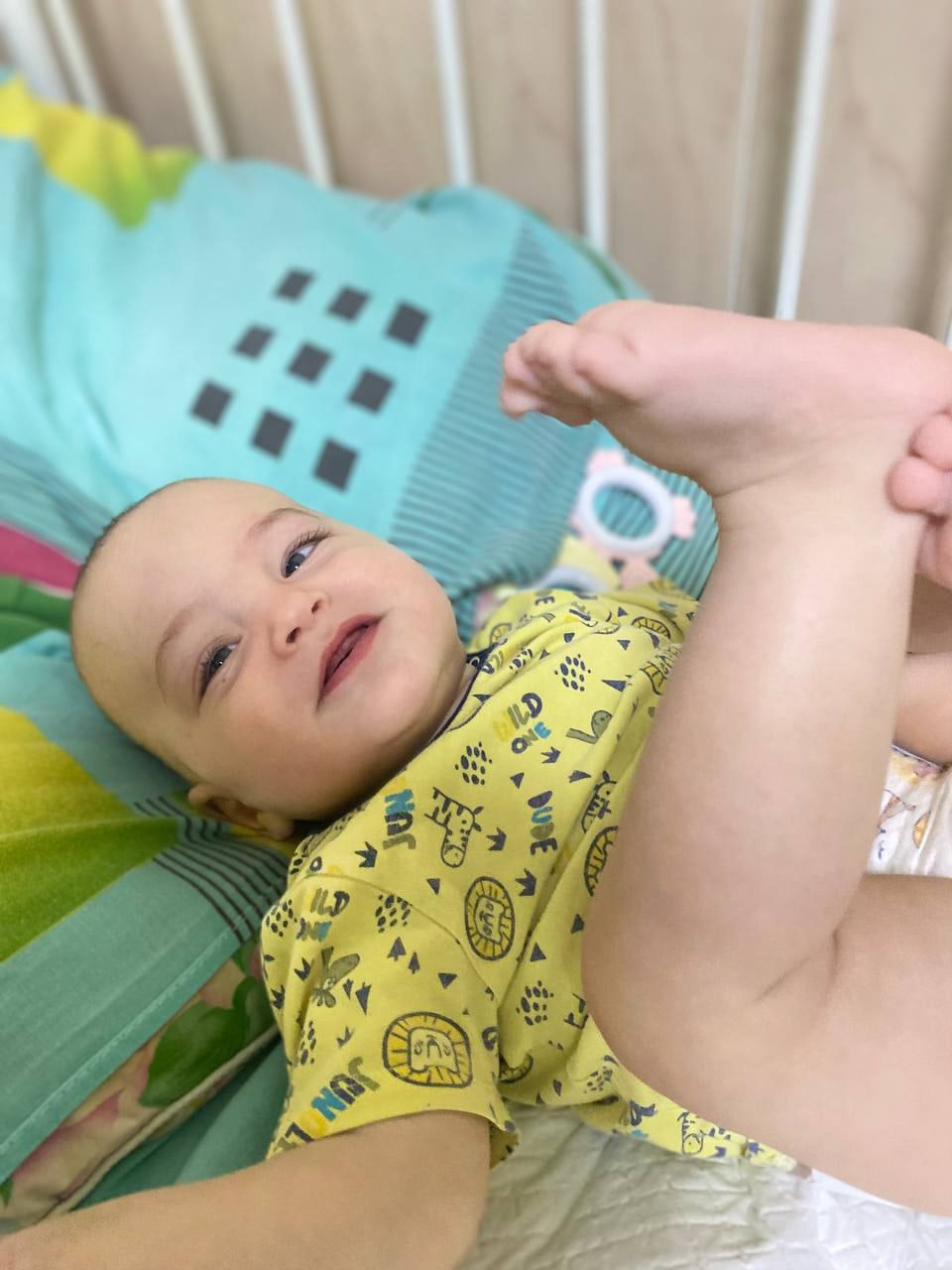 Сейчас Ваня, не смотря на всю ситуацию, очень улыбчивый активный малыш. Очень громко разговаривает “на своём”, любит рассматривать свои пальчики на ручках и особенно ножках. Эмоционально отзывчив, отвечает улыбкой на улыбку няни. Очень любит, когда его берут на ручки. На медиков реагирует спокойно, но если делают больно, ставят уколы, плачет.