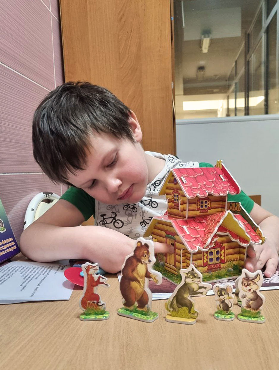 Для него важен тактильный контакт, он, то и дело подходил к няне, обнимался, мурлыкал как котёнок, и шёл играть дальше.